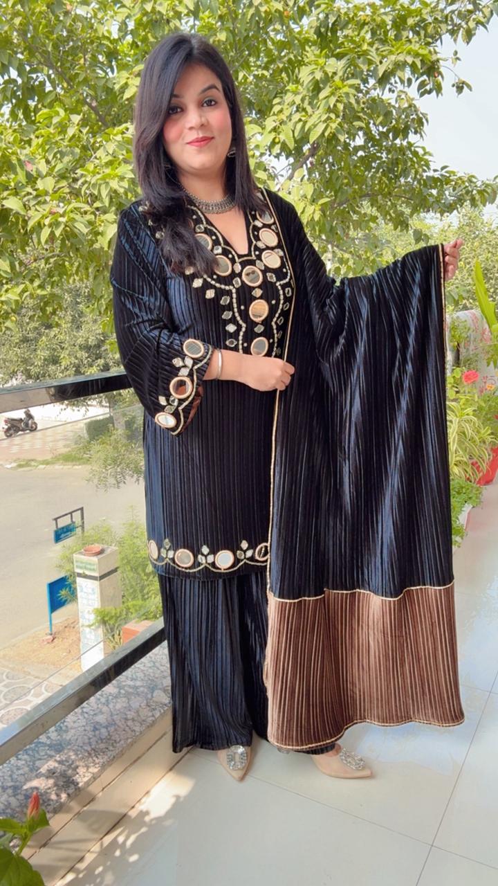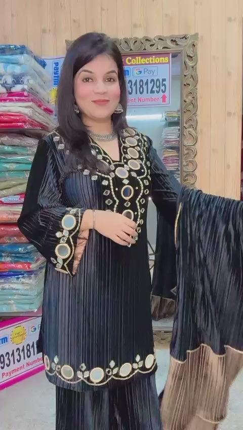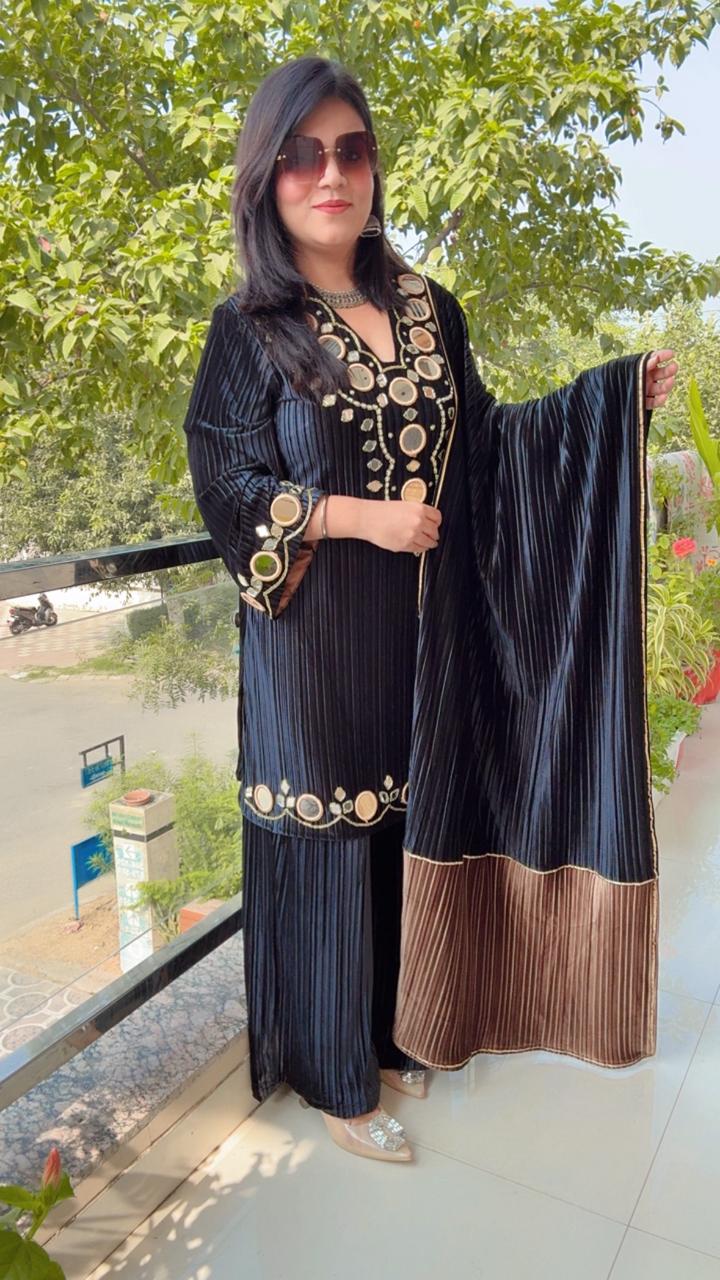 The main color is deep Blue The fabric has a distinct texture and sheen, suggesting it is likely velvet or a similar textured, crushed/pleated fabric. The pleated or crushed finish gives it a luxurious, ribbed effect.