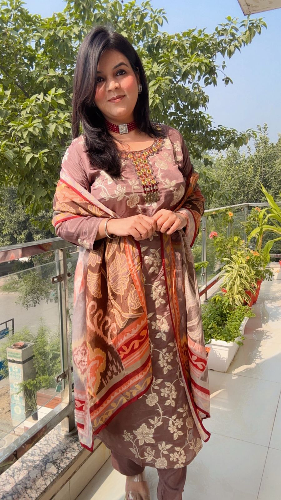 It features intricate all-over embroidery in a contrasting light color, likely white, silver, or light gold thread, suggesting a delicate floral or buti (small motif) pattern.