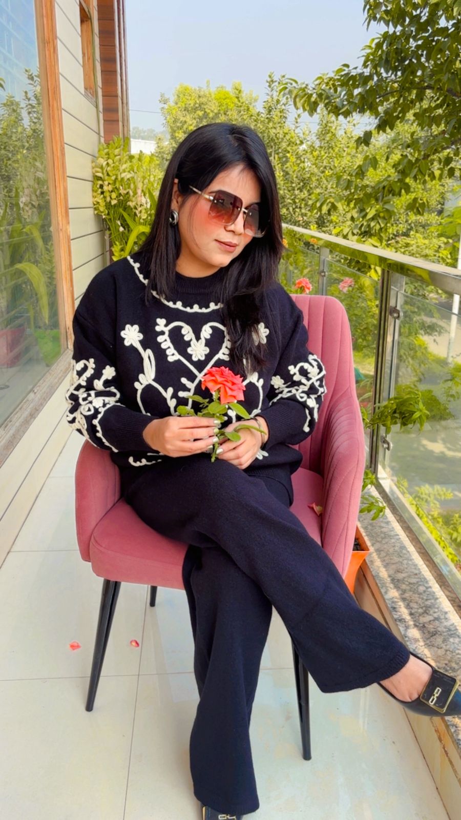Knitted Co-ord Set (A matching top and bottom made from knitted fabric).