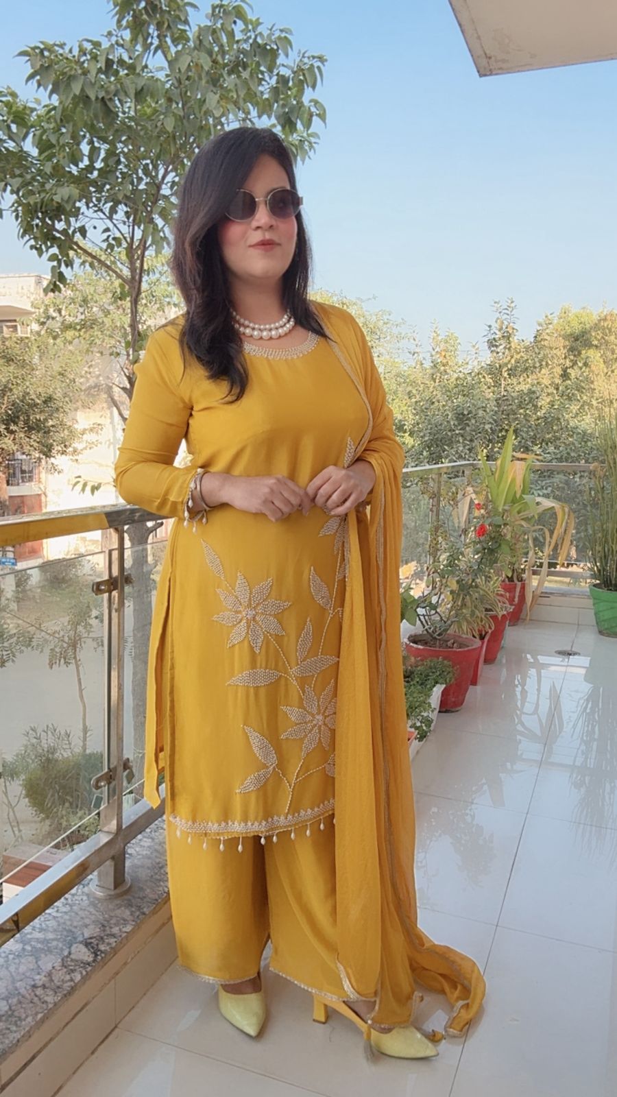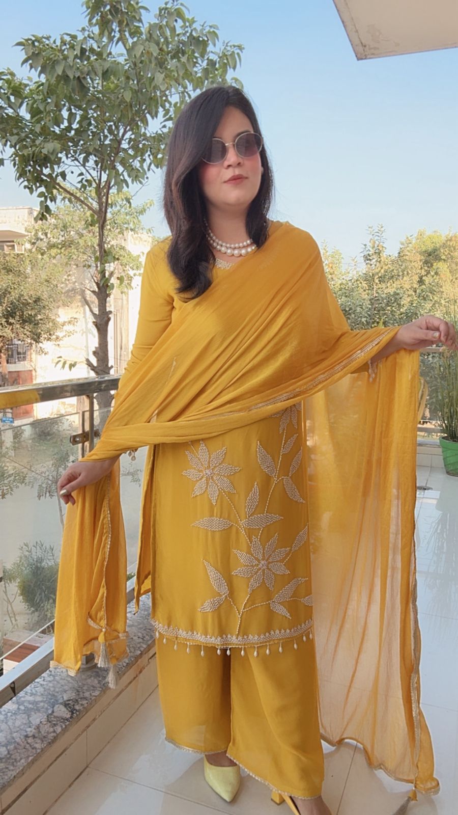 A vibrant, saturated mustard yellow that is consistently used throughout the entire set.