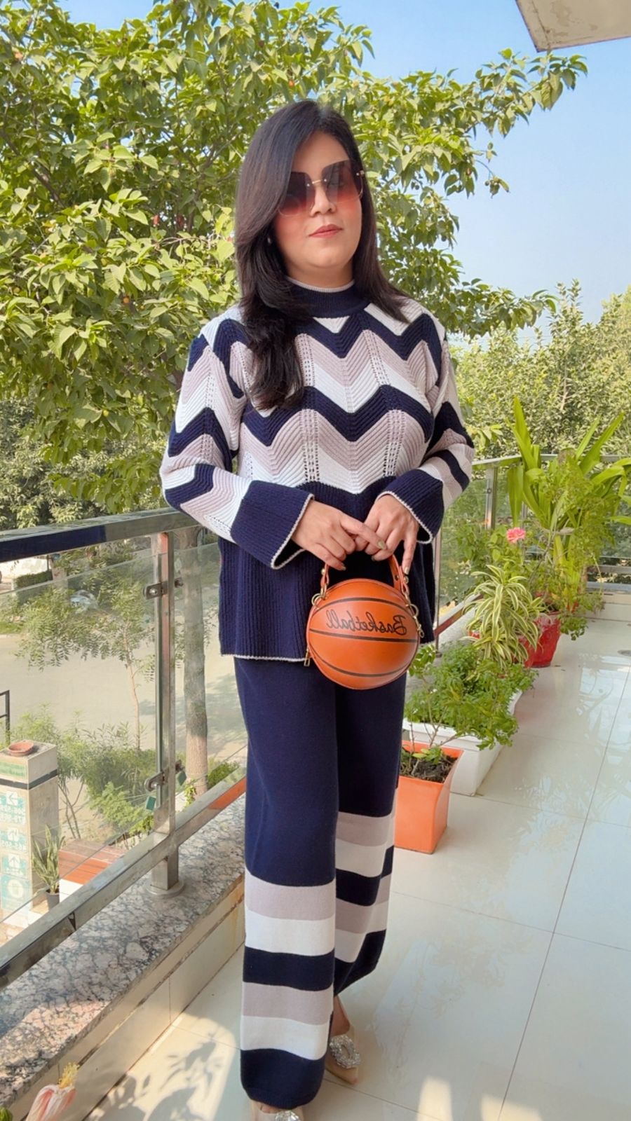 This is another knitted co-ord set (sweater and matching pants), perfect for a cozy, structured casual look.