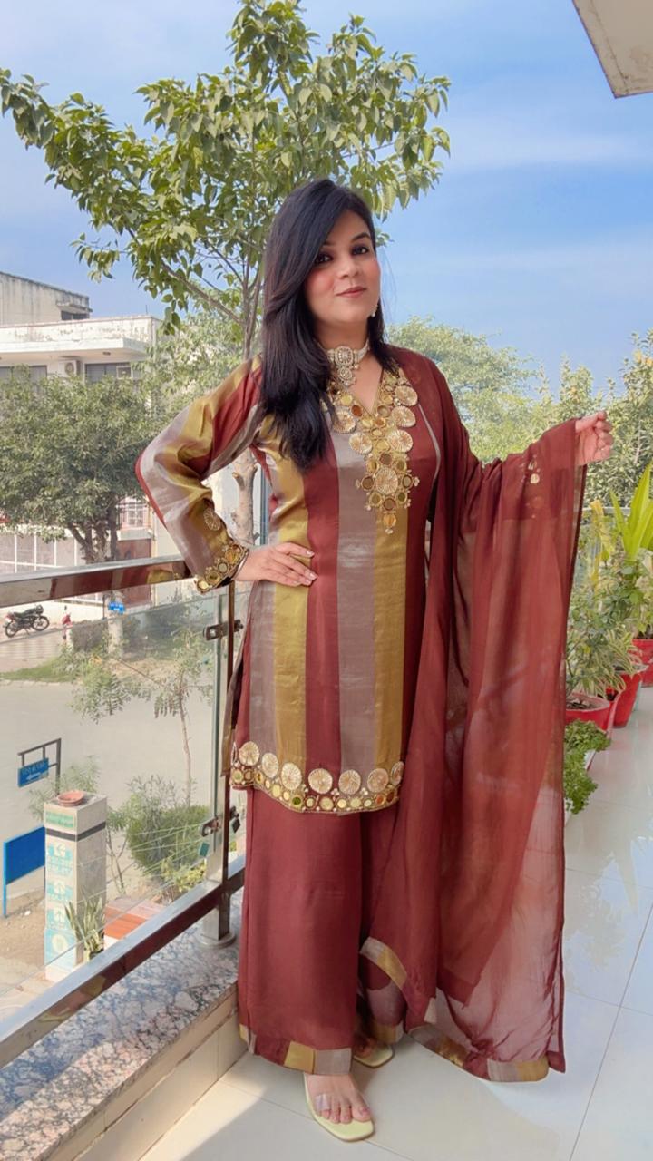 Premium Silk-Blend Chanderi, known for its lightweight feel and luxurious natural sheen.